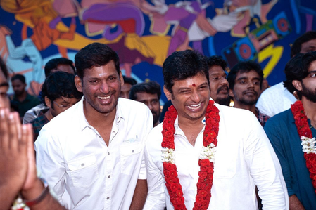 Apart from the cast and crew of the film, actor Vishal, producer R B Choudary and distributor Tiruppur Subramaniam graced the event with their presence.