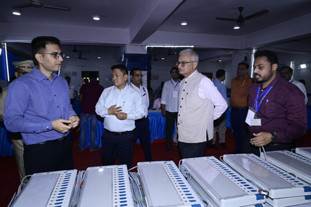 Joshi began his tour at Motihari (East Champaran), where he inspected the First Level Checking (FLC) centre. He assessed the progress of the EVM/VVPAT verification process, interacting with Electronics Corporation of India Limited (ECIL) engineers and reviewing technical protocols.