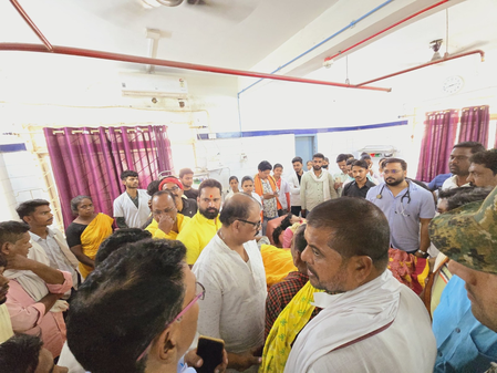 Former Jharkhand minister Mithilesh Thakur visited the hospital to meet the bereaved families.