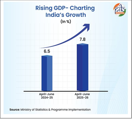 This comes as India’s GDP growth accelerated to a robust 7.8 per cent in the first quarter (April-June) of the current financial year compared to the growth of 6.5 per cent during the same quarter of FY 2024-25, as per official figures released by the Ministry of Statistics.