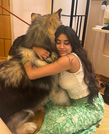Her Shihtzu pet dog Panda visited Janhvi during the shoot. She took to her Instagram stories and dropped a heart-melting photo of hugging her furry baby.