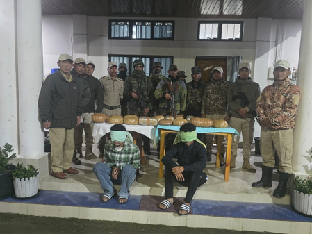 The official said the security forces arrested two individuals from the Mao police check post in Senapati district and recovered 18 plastic packets containing dry Ganja weighing approximately 22 kg from them. The estimated value of the Ganja (marijuana) is Rs 2.18 lakh. The arrested individuals were identified as Ajmir Sarif (19) and Iliyas Ali Shah, both are residents of Thoubal district.