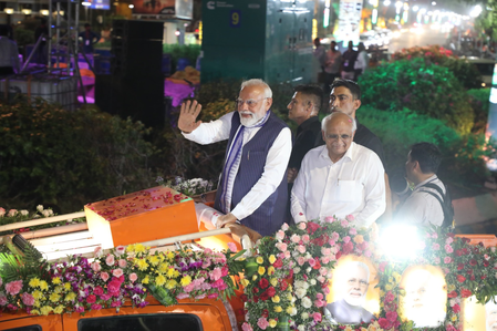 Prime Minister Modi was addressing a road show in Bhuj, Gujarat, on Monday. The golden sands of Kutch glowed under the afternoon sun as the Prime Minister arrived in the border district for the first time since Operation Sindoor. Thousands gathered in Bhuj, chanting ‘Bharat Mata Ki Jai’.