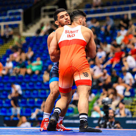 He began with a bye in the qualification round. In his first bout, he defeated Sadyk Lalaev (UWW) with a dominant 9-3 score. In the quarterfinal, Sumit overpowered Korean wrestler Dahyun Kim by fall (7-4). Continuing his winning form, Sumit defeated Kazakh wrestler Galym Kabdunassarov by technical superiority (10-1) in the semifinals.